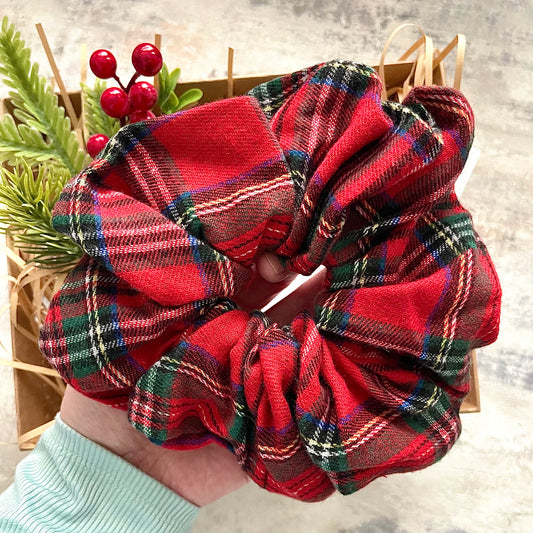 Super XL red tartan scrunchie