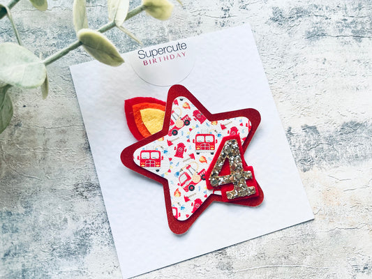 Fire Engine Star Birthday Badge