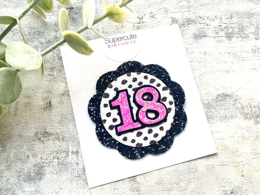Black Polka Rosette Birthday Badge